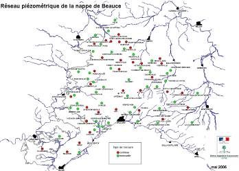 We have surveyed for Agence de l’Eau Loire Bretagne nearly 500 holes distributed over the whole of Beauce with the additional level of the water table determined by means of a probe. On the map below, published by DREAL Centre, only a part of them, regularly monitored, is represented.