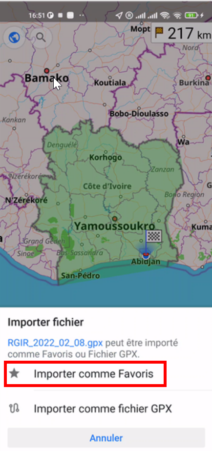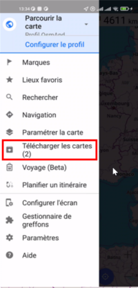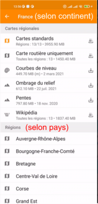 Les cartes sont également disponibles en téléchargement libre depuis le Web à l’adresse https://download.osmand.net/list.php. Les fichiers devront être dézippés et stockés dans le répertoire de l’application.