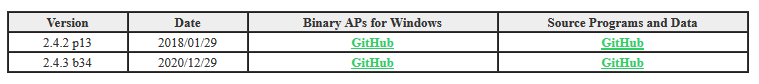 - Le téléchargement de l’exécutable Windows se fait en cliquant sur Github dans la colonne Binary APs for Windows. La dernière version stable (2.4.2 p13) date de plusieurs années. Nous avons utilisé sans avoir décelé de problème la version 2.4.3 b34. Dans la page qui s’ouvre après avoir cliqué sur le lien Ghitub choisi, cliquez sur le bouton « code » puis « Download ZIP ».
